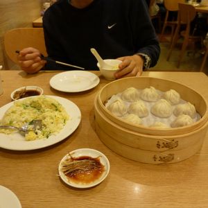 あの有名なお店、県泰豊本店に18時過ぎに行きました。店の外では多くの人が並んでいました。約束の時間は18時30分でしたが、クーポンを提示すると、すぐ店員さんが3階に案内してくれました。3階はほとんどが日本人でした。とてもいい雰囲気な環境でした。5分もしないうちにしょうろんぽうがでてみました。とてもおいしかった・・・ 他にも野菜、焼き飯などコース料理が出てきて腹いっぱいになりました。少ししょうろんぽうが冷めていたのかな・・・