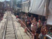 メークローン線路市場では、列車に直接に触る事ができ感激! 通過前に線路の露天が退避している所も見れました。 噂話が実体験になりよかったです。 ガイドされた方も大変良かった。ありがとうございました。