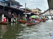タイのキャンペーンで、3000円引きになるなど、大変お得に参加できました! 朝早い出発でしたが、その分メークロン市場に余裕をもって到着でき、ガイドさんが絶好の見学場所を紹介してくれました。電車に乗れたのも良かったです。 水上マーケットへは、途中からモーターボートでの移動に。15〜20分の乗船時間で、タイの田舎町が見られて満足。水上マーケットでは手漕ぎボートに乗らなくていいかな⋯というほど。