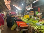 6:10ホテル迎えとかなり早い出発。先に一人参加の方が乗車。 私は10歳の息子と2人参加。次のホテルで女性3人組を迎え、メークロンへ出発。 渋滞なく順調に約1時間余りで到着。駅のすぐ近くで下車して、徒歩で周辺散策。 電車到着の30分前にガイドさんお勧めの線路沿いのカフェで飲み物を注文。 カフェがそれぞれにビュースポットを持っている感じでお客さんが優先的にその場所を利用できる。バッチリ目の前で鉄道通