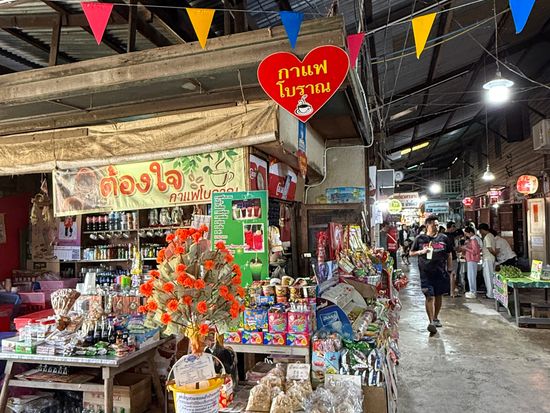 電車がまだ来ない時の、市場の様子。南国のフルーツ、ロンガン、マンゴスチン、ランブータンが美味でした。