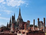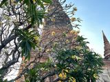 中央にそびえる、トウモロコシのような形をした大きなクメール様式の仏塔(プラーン)が非常に特徴的で、アユタヤを代表する寺院の一つです。夜間にはライトアップされ、幻想的な姿を見ることができます。