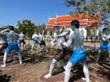 このツアーでしか行かないワット・バーンクン寺院は、行ってみて良かった観光地の一つです。菩提樹に覆われた本堂はかなり雰囲気がありますし、境内にずらりと並ぶ等身大のムエタイの人形は圧巻です。