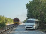 専用車で1時間ほど乗ると、メークロン市場に到着。電車が来るまで、2往復くらい線路の上で観光できた。どんどん人が増えて行くので、朝の時間が貴重。ガイドさんは、電車が来る時間を把握して、無料で見れるスポットなど教えてくれて、バッチリ動画を撮ることができた。