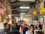 解散場所のジョッドフェアーズ・ナイトマーケットは出発場所の道路の向かいにあります(出発場所で解散になって、徒歩2分くらいで移動しました)。観光客向けのマーケットですが、タイ人もかなりたくさんいて、かなり賑わっていました。友人が初めてということで昆虫の唐揚げセットやワニの串焼きなど、タイらしいものも食べました。マーケットの隣にちょっとしたショッピングモールがあって、大型格安スーパーのBIG Cが入っていますので、お菓子などのお土産はそこで買ってもいいかなと思います。