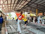 ずっと行きたかった憧れのメークロンでは目の前を通り過ぎる電車に感動!さらに電車に乗りこみ、電車の中から市場にいる他の観光客の方に手を振ったり交流する楽しさもありました。