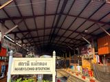 そして大本命のメークロンへ。チャイさんが良いスポットを教えてくれたので、大混雑の中でも最前列で電車を見ることが出来ました。電車が通りすぎてから駅舎で停車している電車と写真を撮ったりお昼ご飯を食べて休憩。