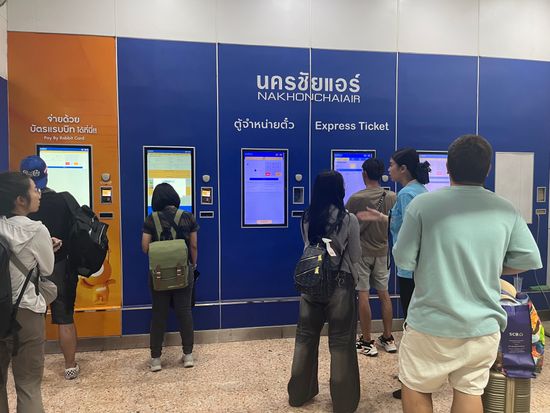 バスはナコンチャイエアー専用のバスターミナルから出発します。出発の1時間半くらい前に到着し、チケット発券機に予約番号を入れて紙のチケットを発券したら、もう出発を待つだけです。ファーストクラス専用の「ラウンジ」という名の待合室がありますが、空港ラウンジのようなサービスは特に何もなく、出発時間まで時間がかなりあったので、バスターミナル内にあるマッサージ店で30分間のマッサージを受けました。料金は30分で125バーツ(約630円)、1時間で250バーツ(約1,250円)と格安です。金額は安いですが、バンコクで何度も受けたマッサージの中でもかなり上位です(かなり痛かったですが...)。
