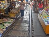 メークロン線路市場では、空き店舗の前を見学場所として確保くださり、最前列で列車通過を見ることができたし、列車に乗って市場を通過できたのは最高の体験でした。列車を見学しているたくさんの方々に手を振り、タッチするなどの優越感も味わいました。