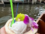 水上マーケットでは運河を高速での移動も快感でしたし、手漕ぎ船に乗って水上マーケットをまわり、ココナッツアイスを購入して食べたのも楽しかった!