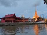 クルーズは、まずまずきれいな船で快適でした。2時間ほど乗りますが、比較的静かですし揺れもありません。食事もトマトパスタやラザニアから鶏肉のステーキやエビの塩焼き、トムヤンクンやパッタイといった料理があります。食べやすい味付けでした。フルーツやミニケーキも豊富です。水とコーヒー、紅茶は無料です。有料ですがソフトドリンクやビールを飲んでいる人も多かったです。クレジットカードが使えます。食堂のテーブル(指定席、結構快適)で過ごすのも良し、風があるものの暑いですが2階のデッキで過ごすのもいいです。田舎の風景からバンコクの都会の景色まで見られるので飽きません。川沿いに寺院もたくさんあります。バンコクに入ってからは、高層マンションや政府機関、王宮やワットアルンが船上から見られるので、こちらもおすすめです。