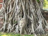 ワット・プラ・マハータートの樹木に包まれた仏頭は、敬意を持って撮影をして下さい