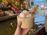 特に水上マーケットでの体験は凄くたのしかったです。200バーツの追加料金で乗れる手漕ぎボートを強くお勧めします。現地の方が操縦してくださる船に乗ってそのまま様々な工芸品や食べ物を眺めたり買ったりする経験は異国にいるのだと強く感じる瞬間でした。私は大蛇をクビに巻く体験と揚げたバナナ、ココナッツアイス、マンゴースティッキーライスを食べました!