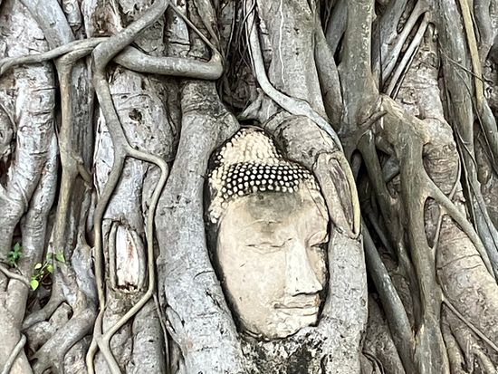 ※菩提樹に埋まる仏頭を撮影の際は、仏様を敬うため、仏頭より高い頭の位置での撮影が禁じられております。仏頭より頭を低くして撮影ください。
