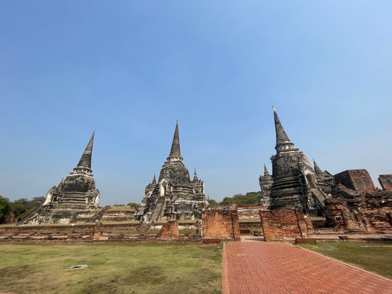 3人のアユタヤ王朝の王が眠る守護寺院、ワットプラシーサンペットを訪問。1491年に建立された寺院で、3基のスリランカ様式の仏塔が並ぶ、アユタヤで最も有名な遺跡です。