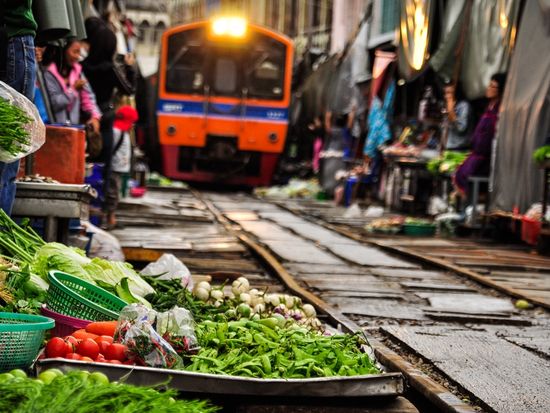 列車が市場を通過する瞬間を間近で体験できる、メークロン線路市場ツアーをご紹介。列車が通るたびに傘をたたむ市場の光景は圧巻で、タイのローカルな雰囲気を存分に味わえます。列車乗車体験や市場散策もお楽しみいただけます。ご予約はこちら!