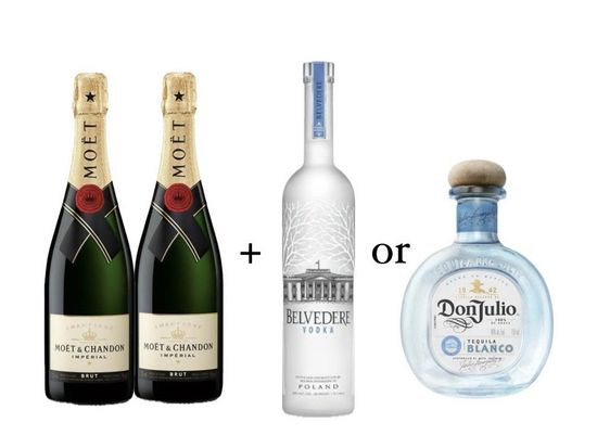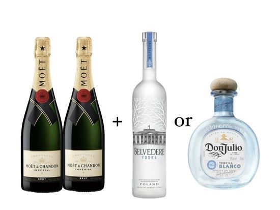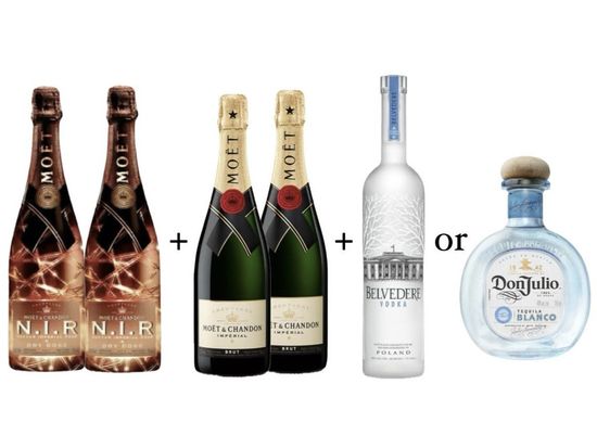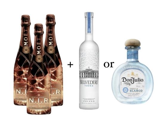 ・月~木、日曜日:Moet N.I.R 3本、BelvedereまたはDon Julio Blanco 1本