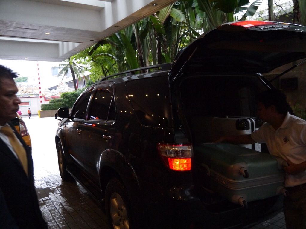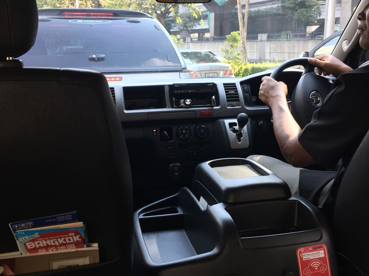 早朝の出発でしたが、運転手の方が既にホテルのロビーで待っていてくれました。移動中は寝てしまったので、特に感想めいたものはないのですが、やはり専用車は快適でした。一つだけ難点を挙げると、私達が宿泊したシャングリラは、シャングリラウイングとクルンテープウイングの二つの建物に分かれていて、結構距離が離れています。ピックアップ場所を決める際には、同じシャングリラでもシャングリラウイングかクルンテープウイングかについても、確認してもらった方が間違いないかと思いました。