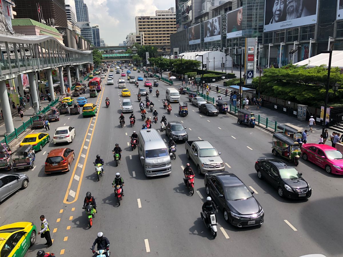 運転しながらスマホナビを使っている、これも日本ほどの規制がないからかどうか、また、バンコク市内に向けては複数の高速道路の選択肢があるので、それを確認しながら、というのもわかります。