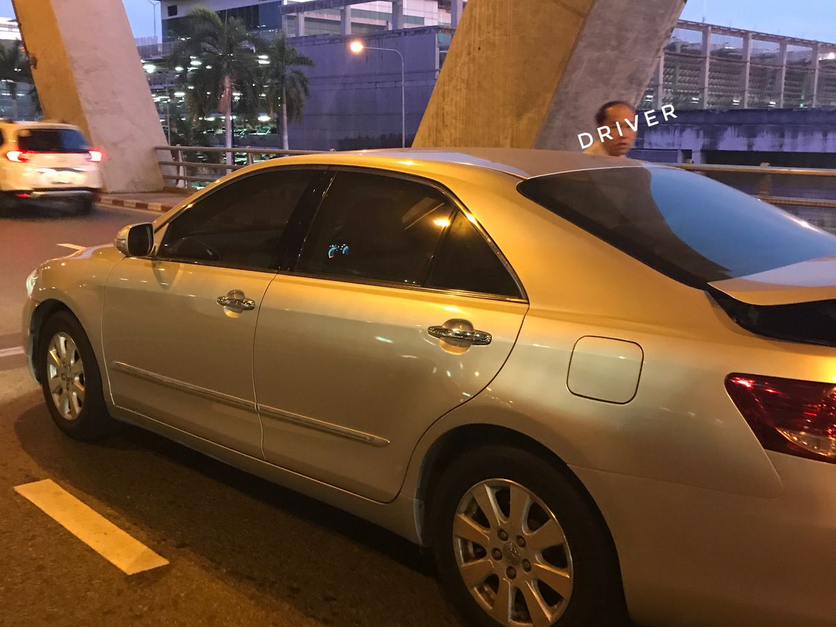 その日は乾季でも珍しく台風が来ているために、いつも以上に空港までの道が渋滞しており、ドライバーがまだ到着できていないとの事。係の方はその後もドライバーと連絡をとって状況を伝えてくれました。暫くしてあと7分程でピックアップできるとの連絡を伝えてくれました。