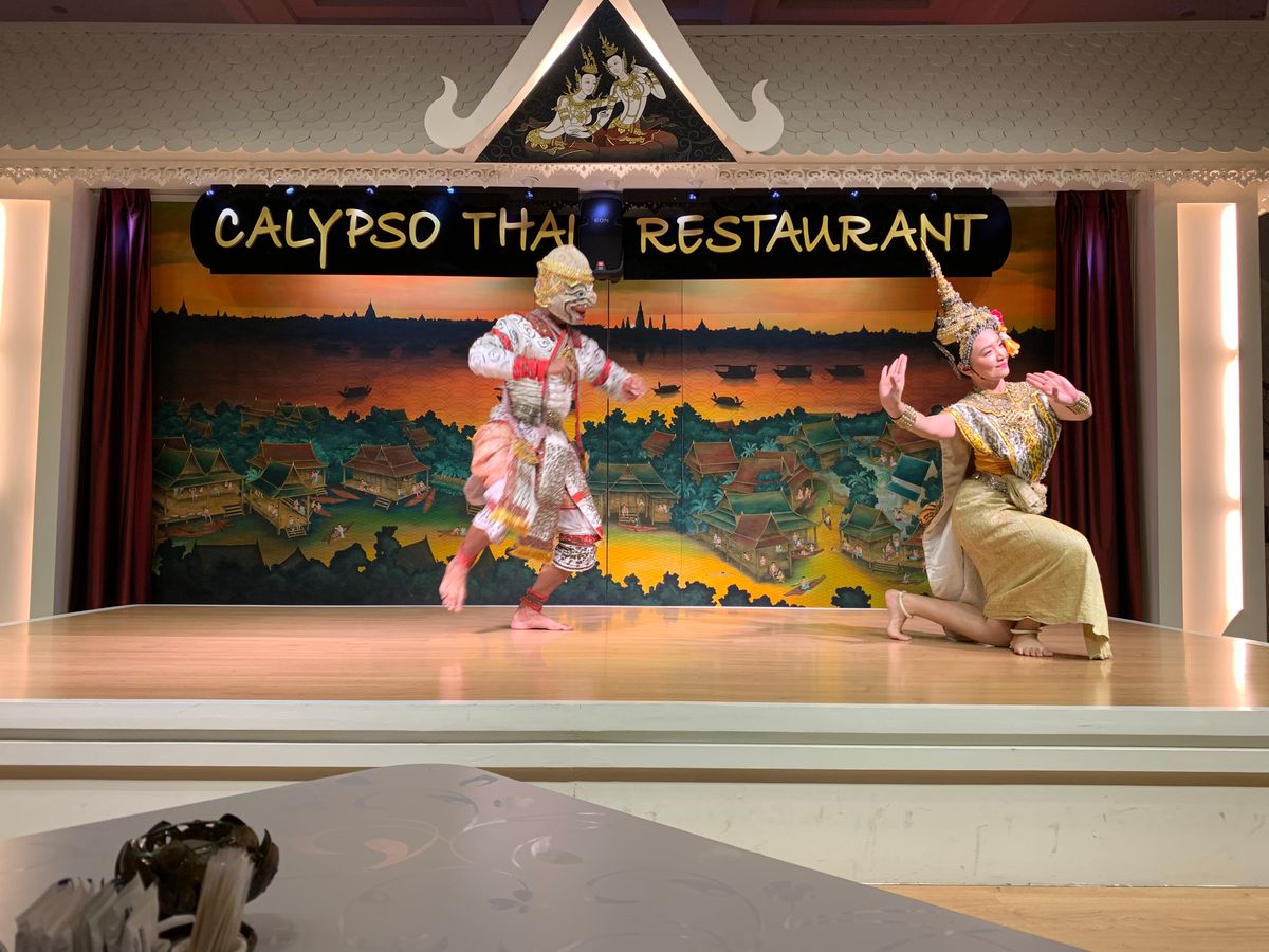 予約していただいていた席は、舞台の正面最前列!とっても良い席でした。お料理も適度な量の食べやすい料理でした。が、楽しみにしていたタイ舞踊が、!?これだけ!?と思ってしまう程度。演者さんが全席を回って写真撮影したり記念にはなりますが、その間はただ待ってるだけ。もう少しタイ舞踊自体を観たかったです。