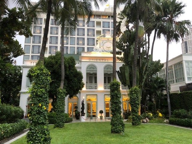 Saphan Taksin駅から歩いて15分、マンダリンオリエンタルに到着。三島由紀夫をはじめ、アフタヌーンティーでも有名な著名人の写真が並ぶAuthor's Loungeを抜け、庭にでて、Oriental Hotelの昔の佇まいを堪能したあと、船にのり、対岸のサラリムナームへ。