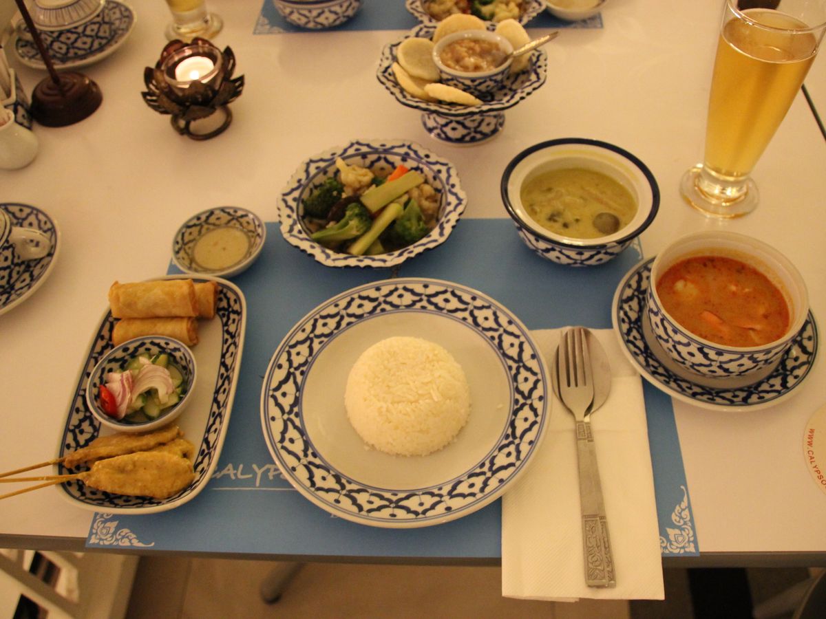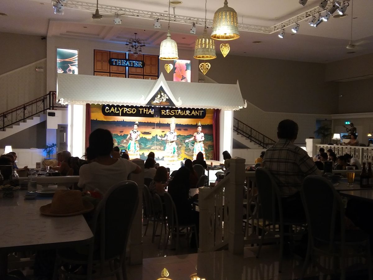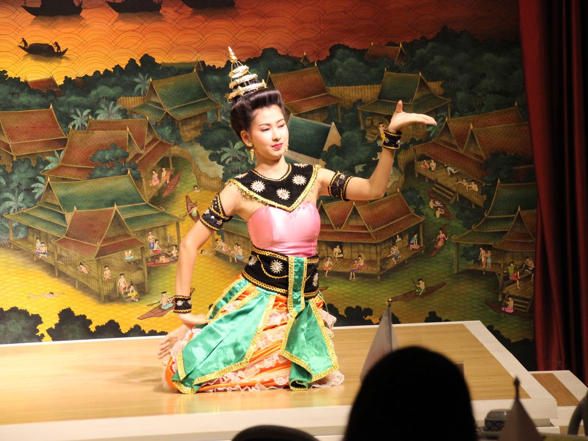 妻と二人でアジアテイーク内のショップを楽しんだ後、ビールを飲みながらタイ料理をいただきました。夕食後半から舞踊が始まり美しく着飾った女性の踊りを楽しみました。