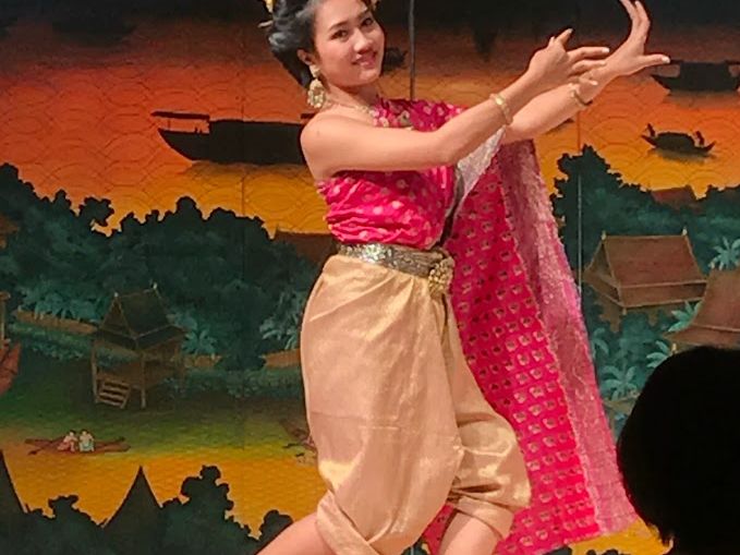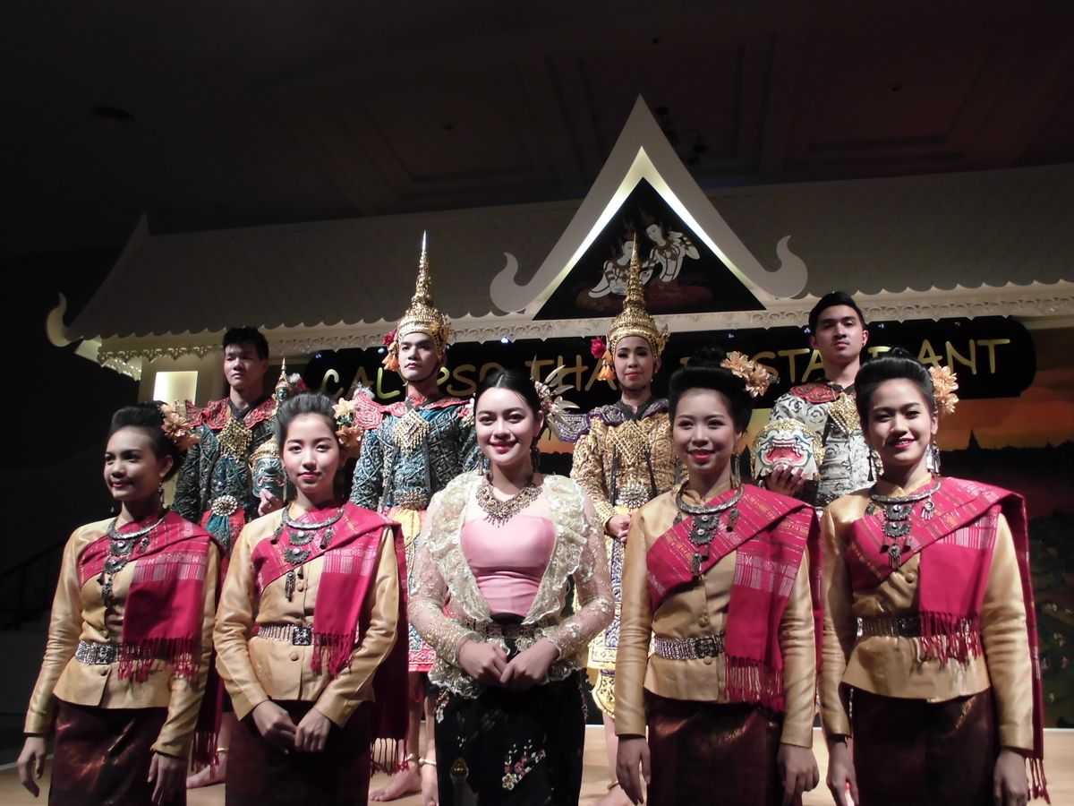 料理は写真に乗せたものの他にデザート(フルーツ)が出ました。タイ舞踊は次から次へと披露されました。ダンサーの人たちは毎回同じですが、衣装や髪型が変わるので見ていて楽しかったです。各テーブルにも来て写真撮影のサービスもあり、良かったです。