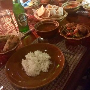 古典舞踊のお食事はココナッツチキンカレー?は美味しかったしカレーもご飯もお代わりできました。他は野菜天ぷら等も出ましたが、あまり、、という感じですね。