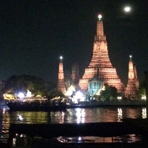 暁の寺といわれるワットアルンですが、夕方や夜に見るのも綺麗です。一度見た方も、夜のクルーズや対岸のレストランで食事しながら見るのがお勧めです。