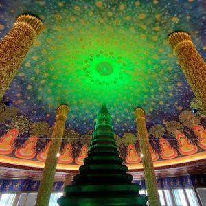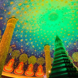 最初のワットパクナムは2日目連続だったのですが、ベテランガイドさんでよかったです!まず、朝一だったんですが、早く着きすぎたということで近くでお花を売っていたので、その説明をしていただいただき、近くのお寺へ。そこではお参り・占いも体験させて頂きました。朝8時開門とともにワットパクナムへ!1日目に入っていない場所から入り、エレベーターで上の階へ。写真撮影も誰もお客さんがいないときだったので、満喫できました。撮り方でハートに見えるように撮ってくださったりと。