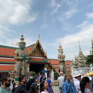 5年ぶりのバンコクで何をしよかと探してたら面白そうなツアーを見つけたので参加してみました。サパーンタクシン駅改札口でガイドさんと合流。私達2人とガイドさんのプライベートツアー(笑)。水上バスに乗って昨年末に出来たばかりのアイコンサイアムを左手に見ながらチャオプラヤー川を北上。船着場に着し王宮へ。多くの観光客でごったがいしてましたがガイドさんのおかげですんなり入場。久しぶりの王宮とエメラルド寺院だったのでガイドさんの説明もまた新鮮でした。その後スタンバイしていたトゥクトゥクでワットポーへ。その後ワットアルンを眺めながらの休憩。なかなか個人ではここまで来ないので、ゆっくりできて◎。再度トゥクトゥクでカオサン通りへ。まだ夕方だったので夜ほどの賑わいは無かったけど、それなりに街歩きは楽しめました!再度トゥクトゥクに乗り街中の道をスイスイ抜けてBTSの駅まで。水上バス、トゥクトゥク乗車はローカル感を満喫でき、BTSやMRTのキンキン冷房にウンザリしていた私達にとって、とても快適なツアーでした。午後からの半日ツアーで時間的にも丁度よかったです。ありがとうございました‼️