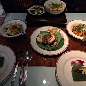 テラス席ではなく、室内のガラスに近い席でした。クーラーが効いていて涼しくて、ワットアルンも見えて、室内で良かったです。料理も美味しくいただきました。