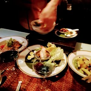 参加人数に応じで、バイキングになることもある様ですが、今回はテーブルでの食事でした。少々料理が出てくるまでに、時間がかかりましたが、味は最高です。辛さも3段階で対応可能です。夜景をバックに写真撮影もあります。