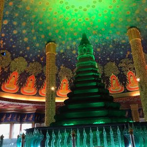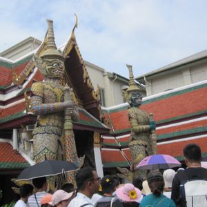 一周する自由時間があり、エメラルドの像が観られました。タイ人オンリーのお祈りスペースがあり、入りたそうに覗いてアピールしてみたら警備員が手招きでこっそり入れてくれました。人も多く、10時近くなって気温が上がってきたので日陰を探して歩きました。