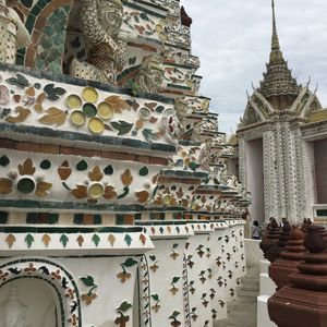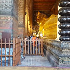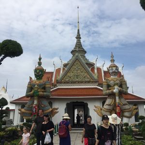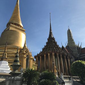 現在ラーマ9世崩御に伴う服喪期間のため王宮・エメラルド寺院(ワット・プラケオ) の観光は制限されます。いつもは見られるのかわかりませんが、エメラルド寺院は中は入れずエメラルドブッダも見ていません。タイ国内から大勢の喪服を着た国民が訪れているためすごい人です。効率よく見るのにはツアーがいいと思いますが、解説も微妙で途中バスが駐車場に入れず歩き移動を余儀なくされるなどまあすごくいいかといわれると微妙です。