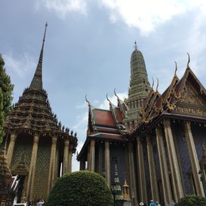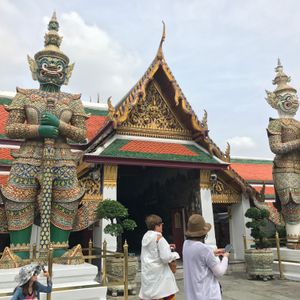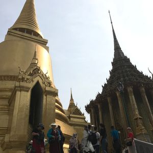 はじめに、王宮、ワットプラケオ別名エメラルド寺院を見学。とにかく混雑!王宮に入るのにパスポートまたはパスポートの写しが必要です。私達はパスポート現物を盗まれないように気をつけて持って行きました。コピーの人で現住所など聞かれている人もいたので、他の国の方々と間違えられたのかもしれないです。入口の係の人にもよるかもしれまでんが、ちょっと緊張の一瞬です。
