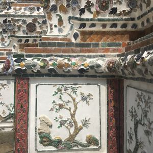王宮もエメラルド寺院も、これぞ、タイ!って言う感じの建物で、細部まで見とれてしまいます。そこから歩きで船着場に移動、日傘が役立ちました。船に乗り対岸のワットアルン暁の寺院に、回収工事中でしたが、色鮮やかな陶器片のモザイク模様が素敵でした。自由時間もありゆっくり写真撮ったりできました。また、船に乗り、ワットポーに、ここも、すごい混雑。集合場所を確認して自由行動。