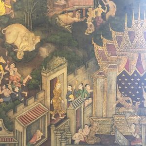 寝釈迦仏の周りは人混みで、ガイドさんが、常に荷物を確認して、スリに合わないように!と言っていたのがよくわかりました。寝釈迦仏の反対側の壁の壁画も素敵です。