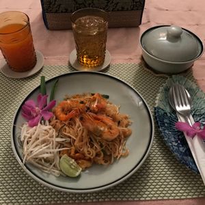 スタッフは皆さんニコニコ。接遇が素晴らしい‼️ドリンクは、4回位出てきたでしょうか。お冷やかと思ったら、甘い❗️パンダンカスタードの風味がする水と、オレンジジュース。トリートメントの合間にフルーツ。バナナヨーグルト。タイのバナナはもちもちしていて美味しい。最後にまた別のお部屋に通されミール。パッタイと具たくさんのスープ。これがすごく美味しい!他にパイナップル皿に乗ったフルーツ。トリートメントの前の問診は男性が丁寧に、ミールはいつが良いか、特にマッサージして欲しいところ、などを簡単な英語で聞いてくれます。時間通りに別棟の個室ツインに通され、担当の方と対面。ニコニコでなにかと優しく、とても行き届いた対応でした。トリートメント中は気持ちの良さに殆ど眠ってしまいましたが、最
