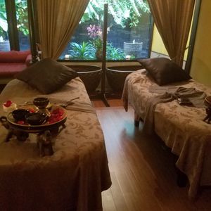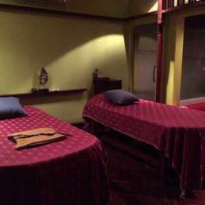 息子(成人です)と二人でタイ古式マッサージのコースを頼みました。2名の施術者がベッドの二つある部屋で同時に施術してくれました。私は体が硬いので心配していたのですが、全く苦痛はなく心地よく、本当に気持ちよく体が伸び、素晴らしかったです。途中で寝てしまったので全部覚えていないのが残念です。施術後はフルーツと暖かいお茶を頂き、ゆっくりすることもできました。またいつか行きたいと思います。