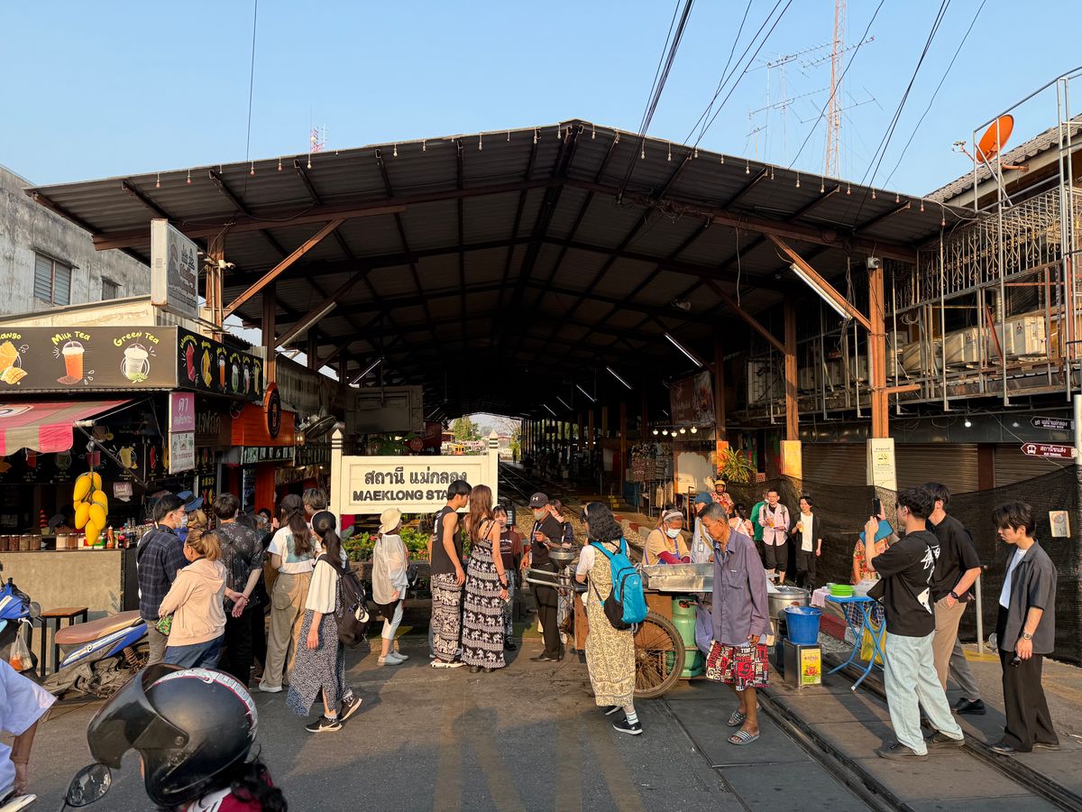 ハノイのトレインストリートの方が「線路に居る感」は上かも。逆にこちらは「市場に居る!!」って感じでお店もちゃんと市場として商売してるし、スペースは広いけど観光客の数も比べ物にならないほど多い。単に間近を電車が通って行った体験より、市場のものすごい人混みの中を電車が通り抜けていった!!っていう感じで、面白さはこちらの方が数倍上。。。でも、人が多すぎてゆっくり通り過ぎるのでは済まず、何回か急停止してた。列車に乗って列車から市場を見るツアーの方がもっと面白いかも。市場としては、線路上だけでなく周辺にかなりスケールのおおきな市場なので、食べ歩きしながらお買い物を楽しめた。