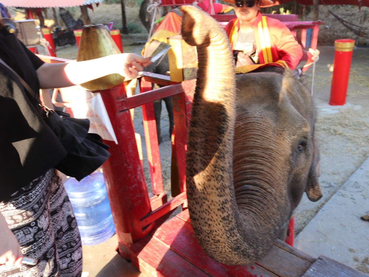 事前のプランではゾウ乗りが最後でしたが今回は始めでした。ゾウさん可愛かったです!延長はしなくても、乗り終わり20バーツをチップとして、ゾウさんに渡す制度になっていました。ゾウさんが鼻でチップを受け取ってくれるのも面白かったです!動画必須です!