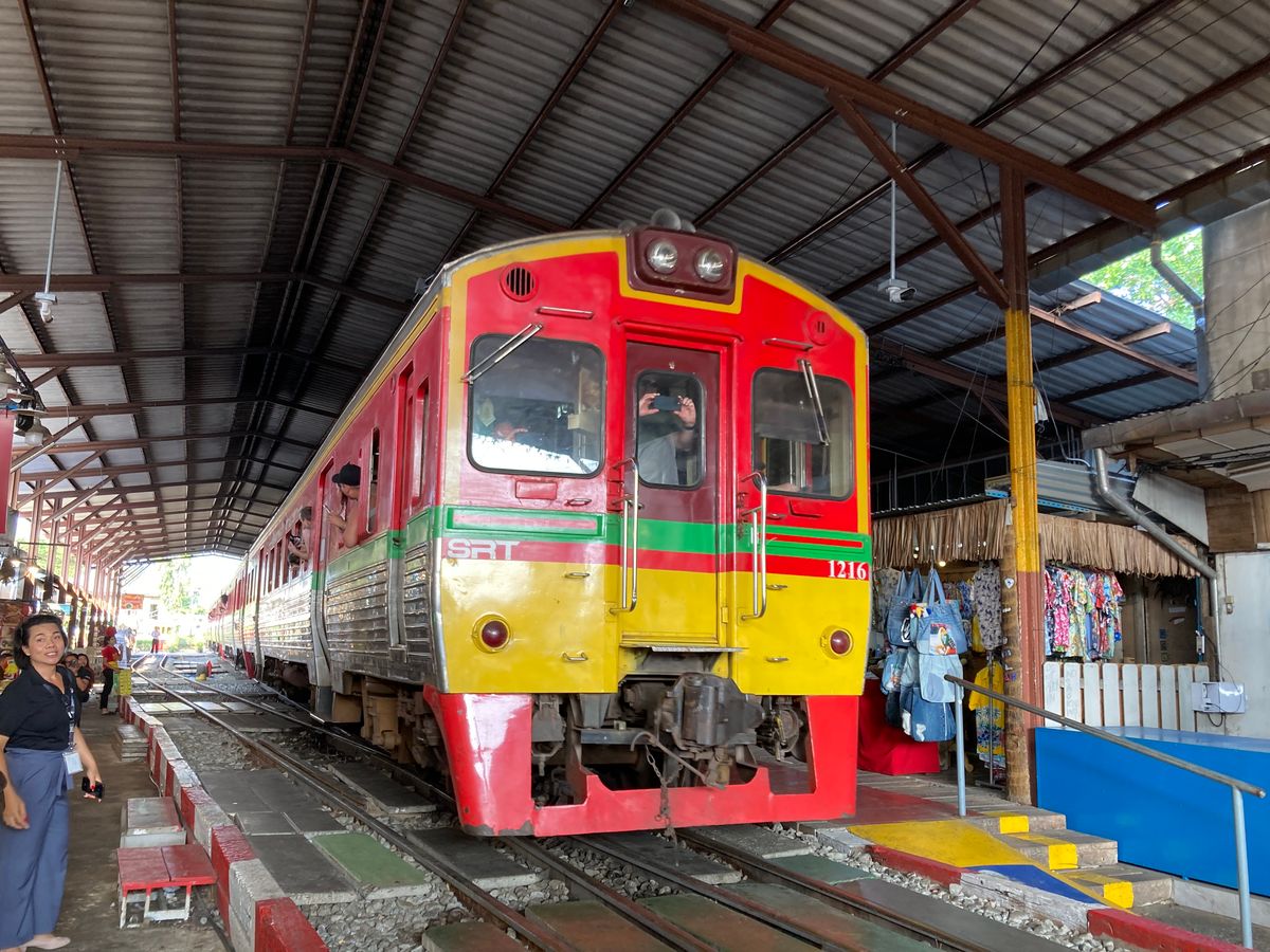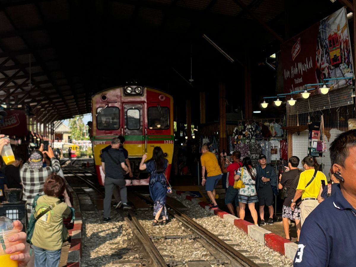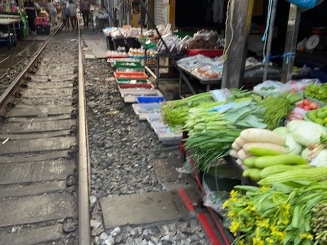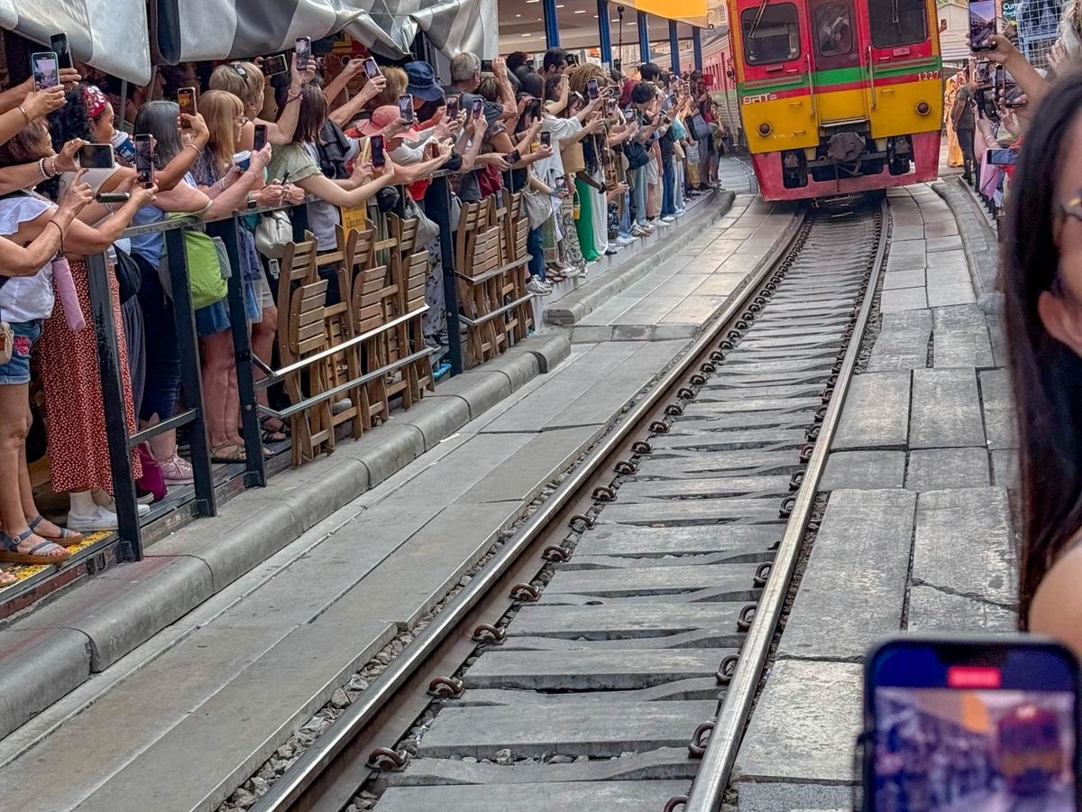 私は、鉄道好きで、メークロン線路市場を列車が走るのが見たくて、参加しました。