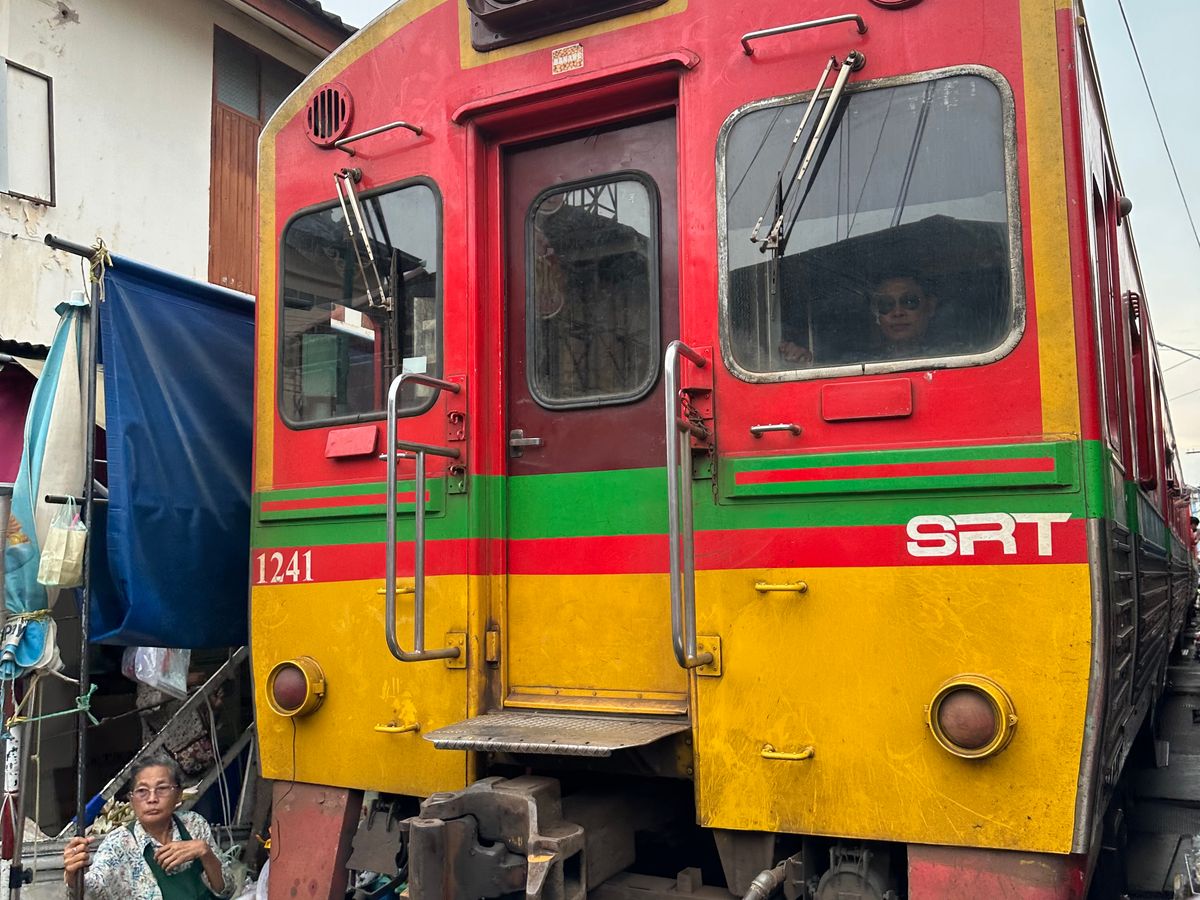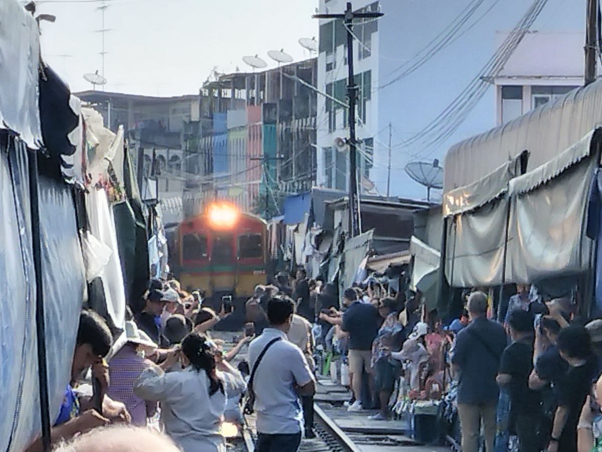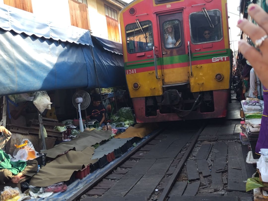 メークロン線路市場は電車の目の前まで連れて行ってもらえました。