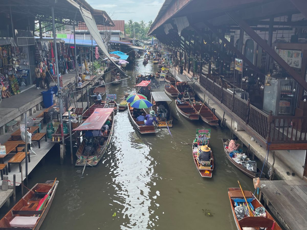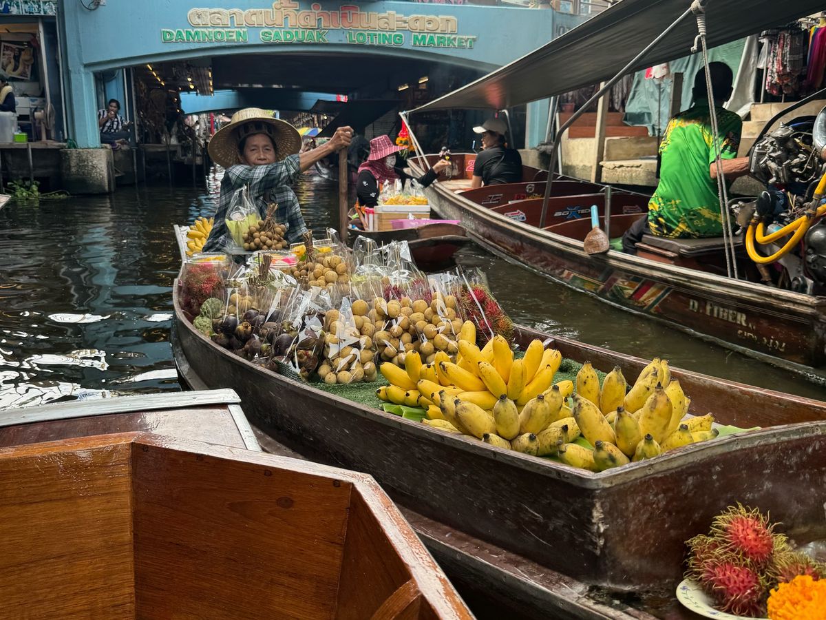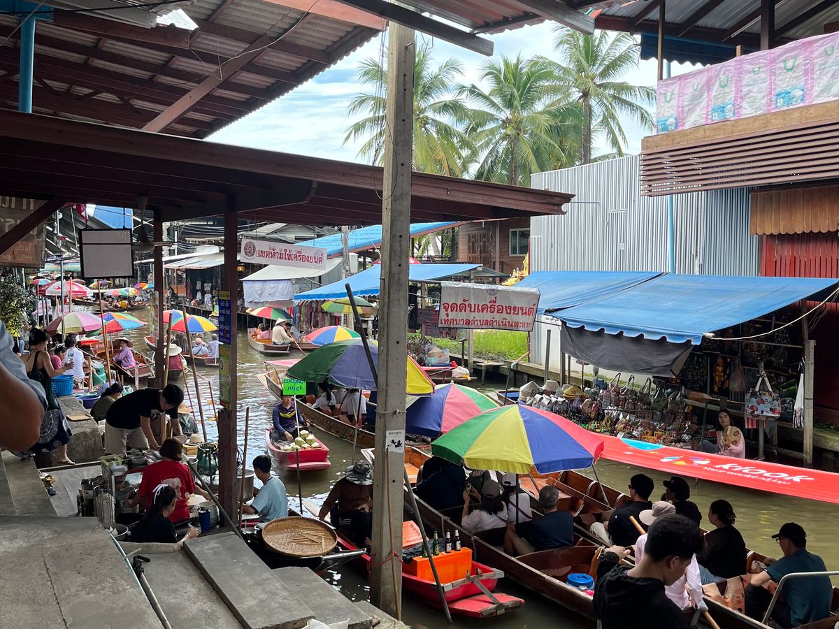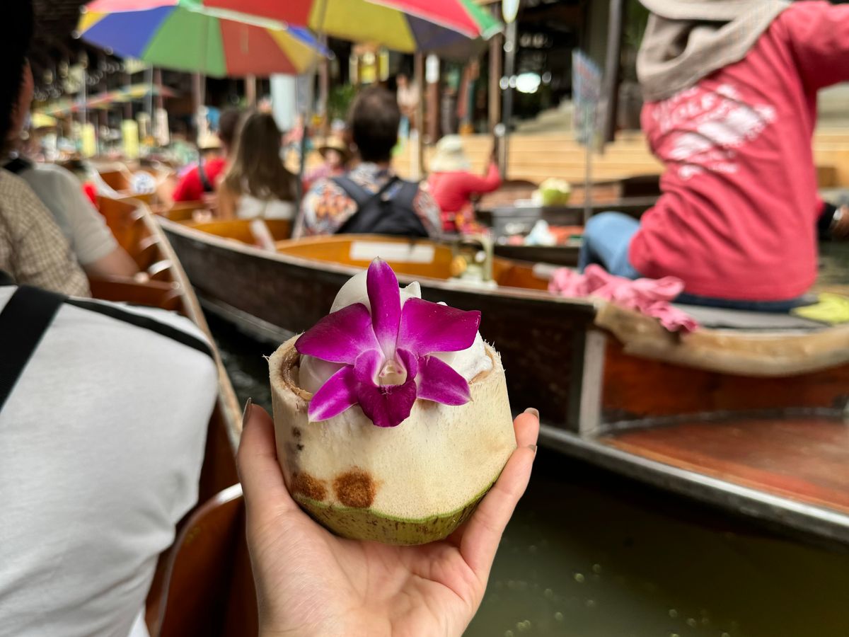 水上マーケットまで向かうボートもスピード感があって楽しかったですし、水上マーケットでの船もゆったり満喫できました。船の上で食べるココナッツアイスは最高でした!