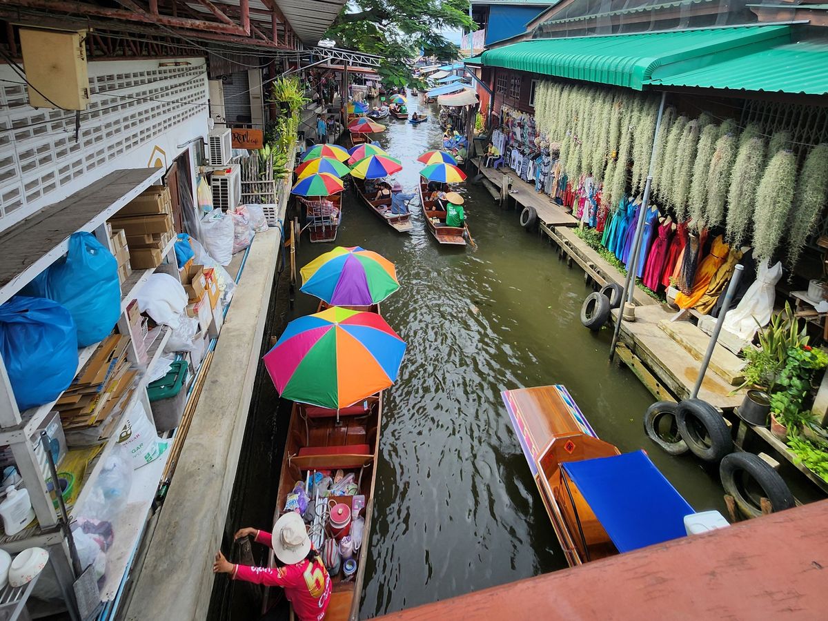 バンコク市内のポー観光の次にアユタヤツアーか迷ってこちらに前日申込ました。タイ近代から続く人の暮らしぶりを垣間見れてとてもワクワク楽しめましたー。ガイドはタイの方で日本語説明がとてもわかりやすく明るく最後まで安心しました。メークロン駅線路市場は観光化されつつあるようですがお土産がとても安い。魚介店では見たこともない魚もいろいろあって見てるだけでも面白く。ココナッツファームもココナッツオイルと砂糖作りも初めてみてガイドさんが作業して見せてくれて昔は各家庭で作っていたと興味津々でした。ダムヌン・サドゥアック水上マーケットは船の運行にハラハラドキドキ。お土産店、食堂も沢山、観光地なので結構高め。ランチは老舗のドライブインみたいなところでタイラーメン、アイスでとても美味しい 帰りは渋滞ありましたが2時にはホテルに帰れましたので効率的に満足なアクティビティで写真一杯。