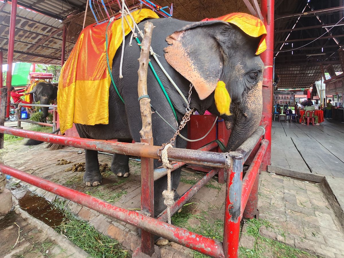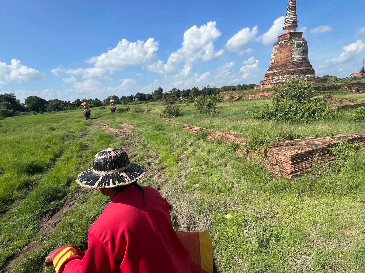 そして圧巻は象乗り体験!これまでプーケットやアユタヤ周辺のほかの象乗りも体験しましたが遺跡のそばを歩いたり川の中に入水(追加10分200THB)などか楽しく大興奮でした。