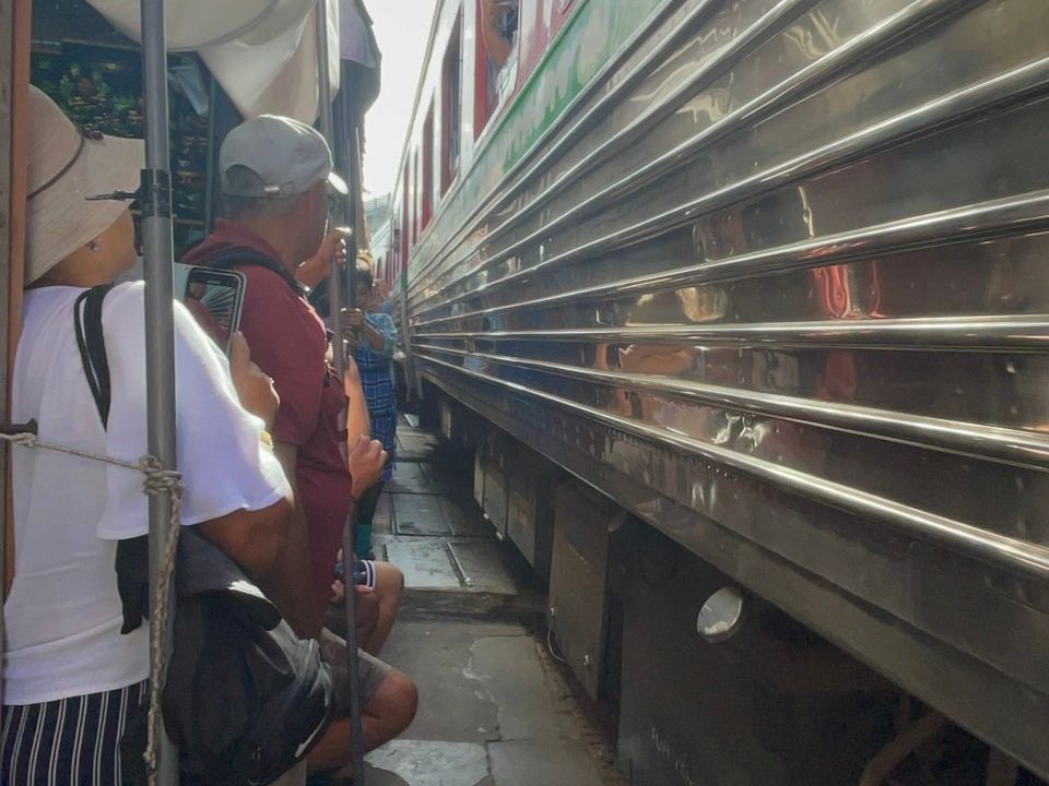 電車ギリギリのマーケットメークロン市場と水上マーケット、ゾウにも乗れて1日のツアー。
