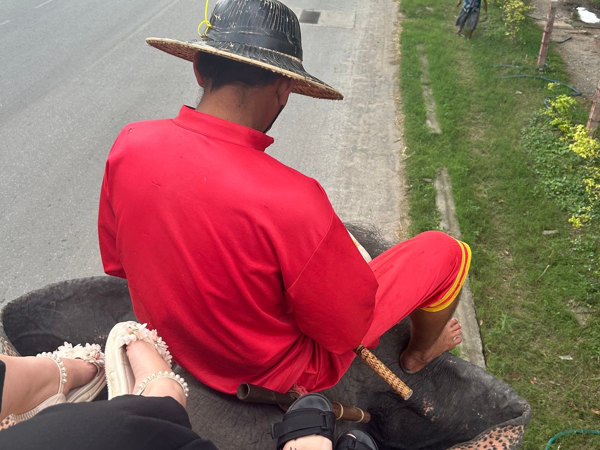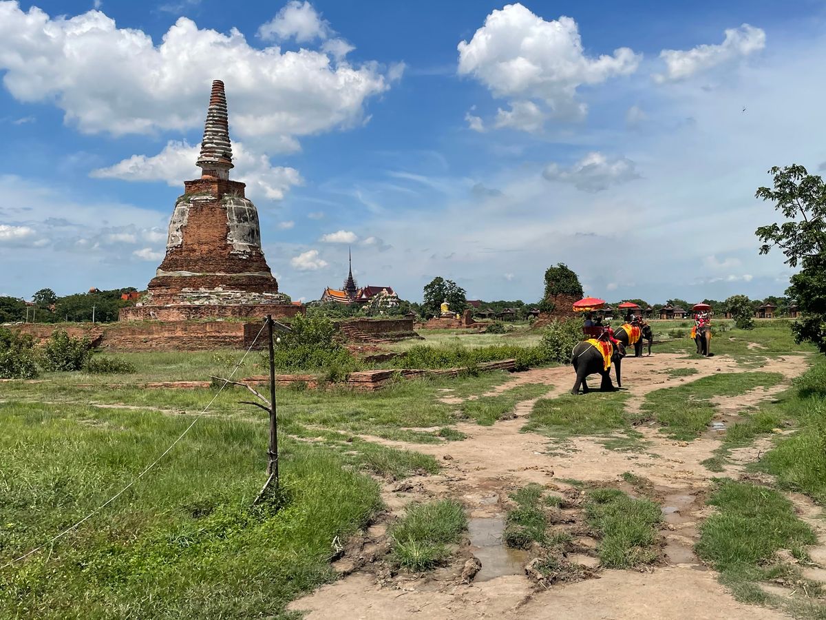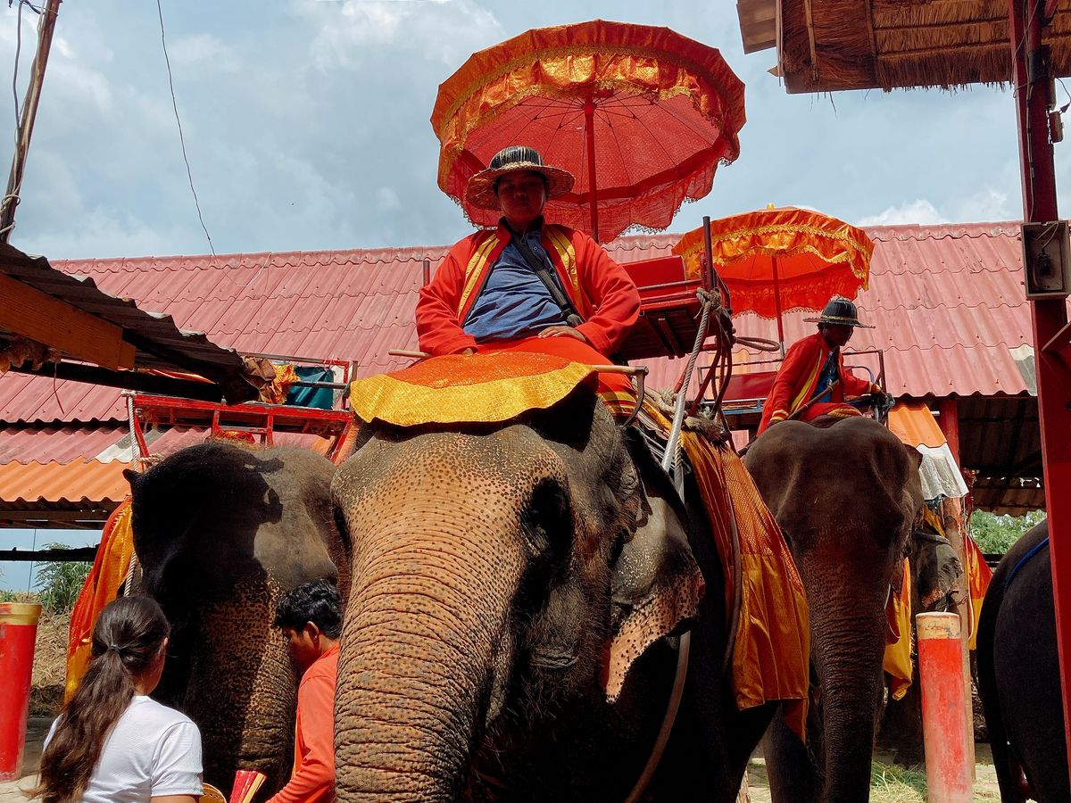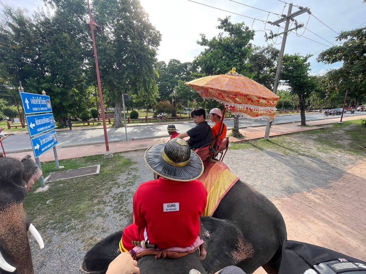 ランチの後、アユタヤに向かい、ゾウに乗ります。